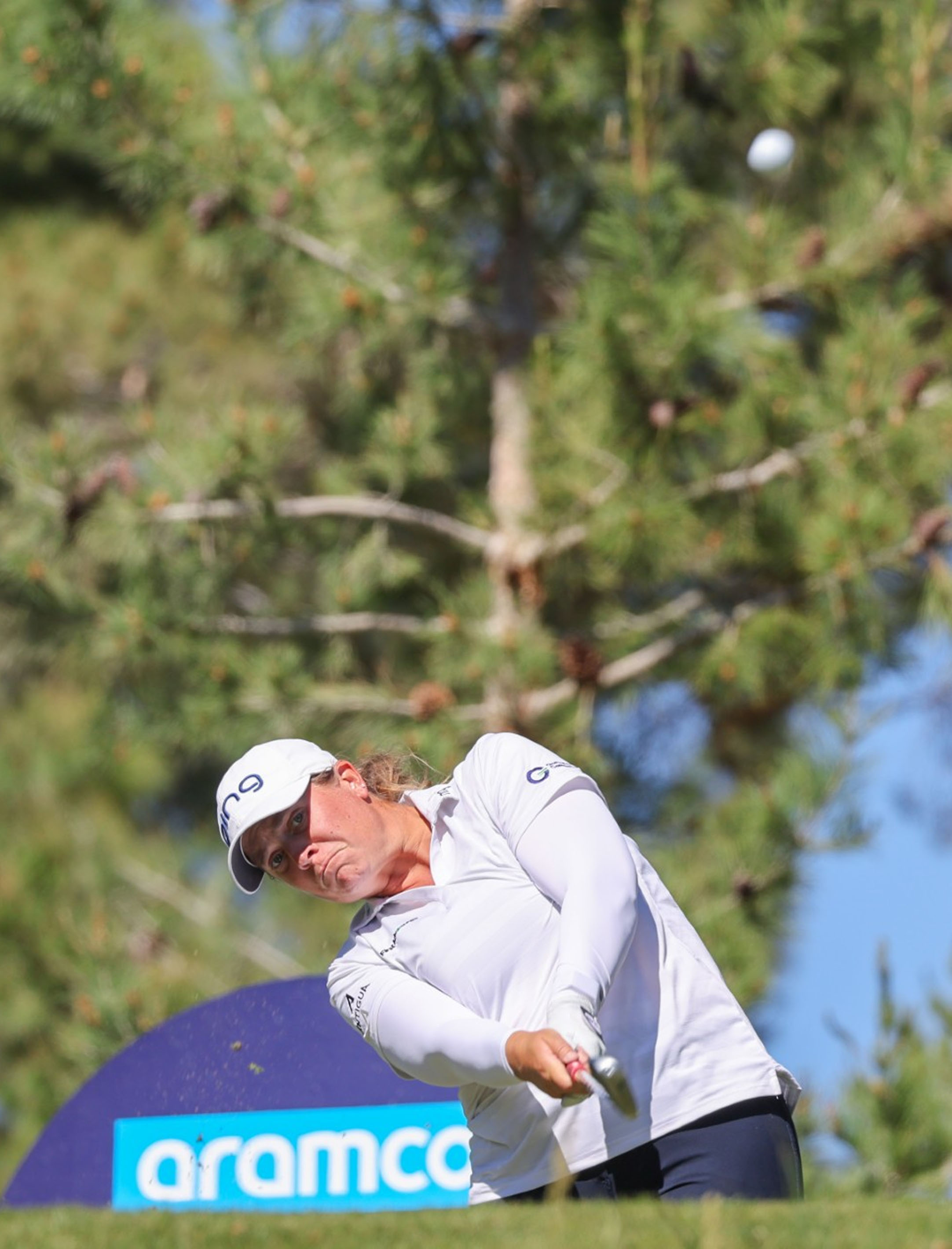 Lauren Coughlin of the United States mastered the tricky conditions in round two at the Aramco Championship